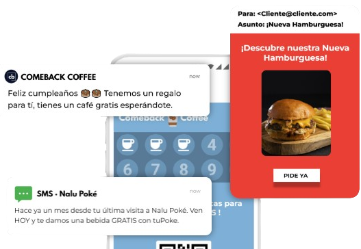 Enviá Notificaciones automáticas o campañas de Marketing con Notificaciones PUSH, SMS o Emails.
