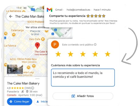 Cada vez que tus clientes te visiten les pediremos que te dejen una review de ⭐5 estrellas en Google.